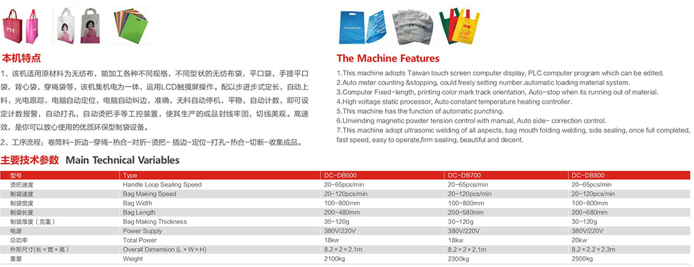 DC-DB600-800無紡布平口燙把一體制袋機