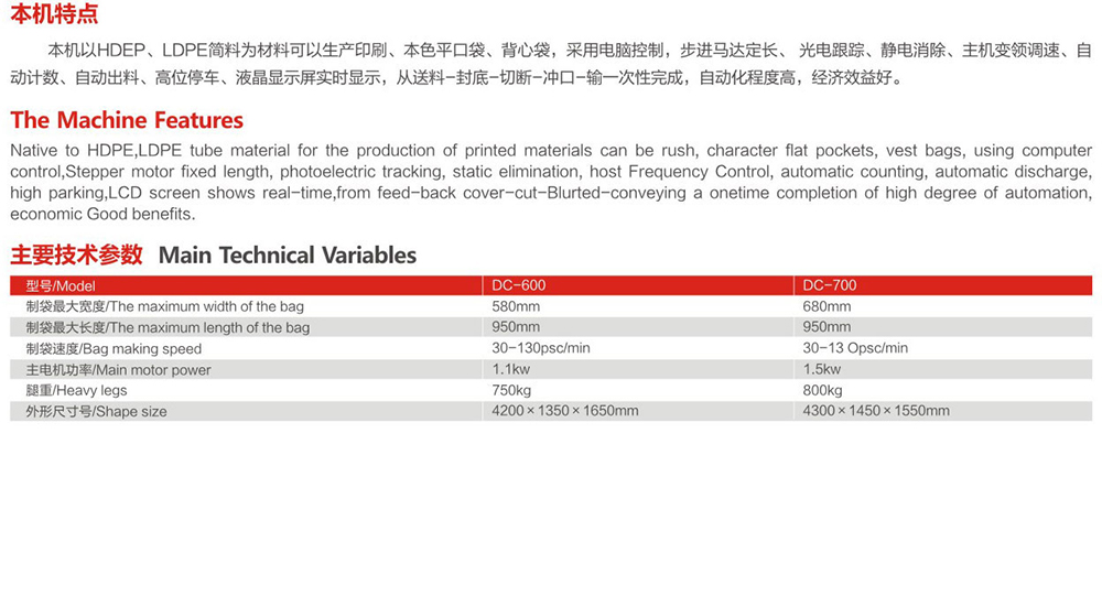DC-600-700單道全自動(dòng)背心袋制袋機(jī)